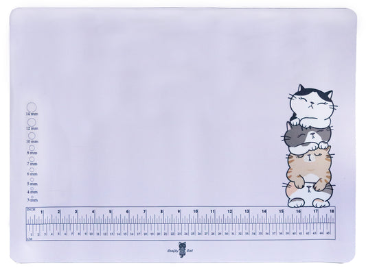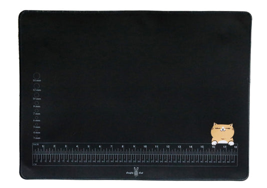 Keep your crafting fun and joyful with a Crafty Cat mat! Made for the professional and hobbiest alike. Features an extra-long 18" ruler, millimeter size guide, anti-slip back and stitched edges. The color was specifically chosen as a neutral for while you're crafting, but also to work well in pictures/videos. Our mats are perfect for jewelry, beading, crafting, gluing, sewing, school projects, or a REALLY big mouse pad 😋
